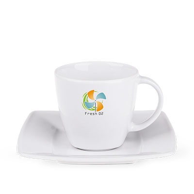 Porcelanowa filiżanka reklamowa dostępna w dwóch wersjach rozmiarowych. Cechą charakterystyczną tego fasonu są delikatne krawędzie widoczne w jego dolnej części.
