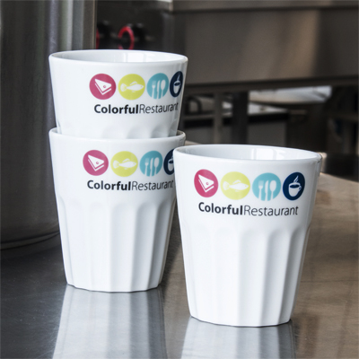 Porcelanowy kubek reklamowy bez ucha dostępny w trzech wersjach rozmiarowych. Falista struktura dolnej części kubka umożliwia pewny uchwyt. Fason umożliwiający sztaplowanie.