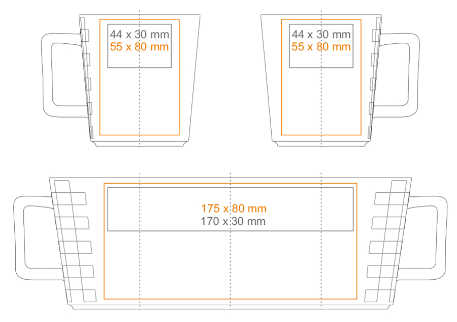 * W przypadku projektów wybiegających poza standardową powierzchnię nadruku prosimy o kontakt z działem handlowym.