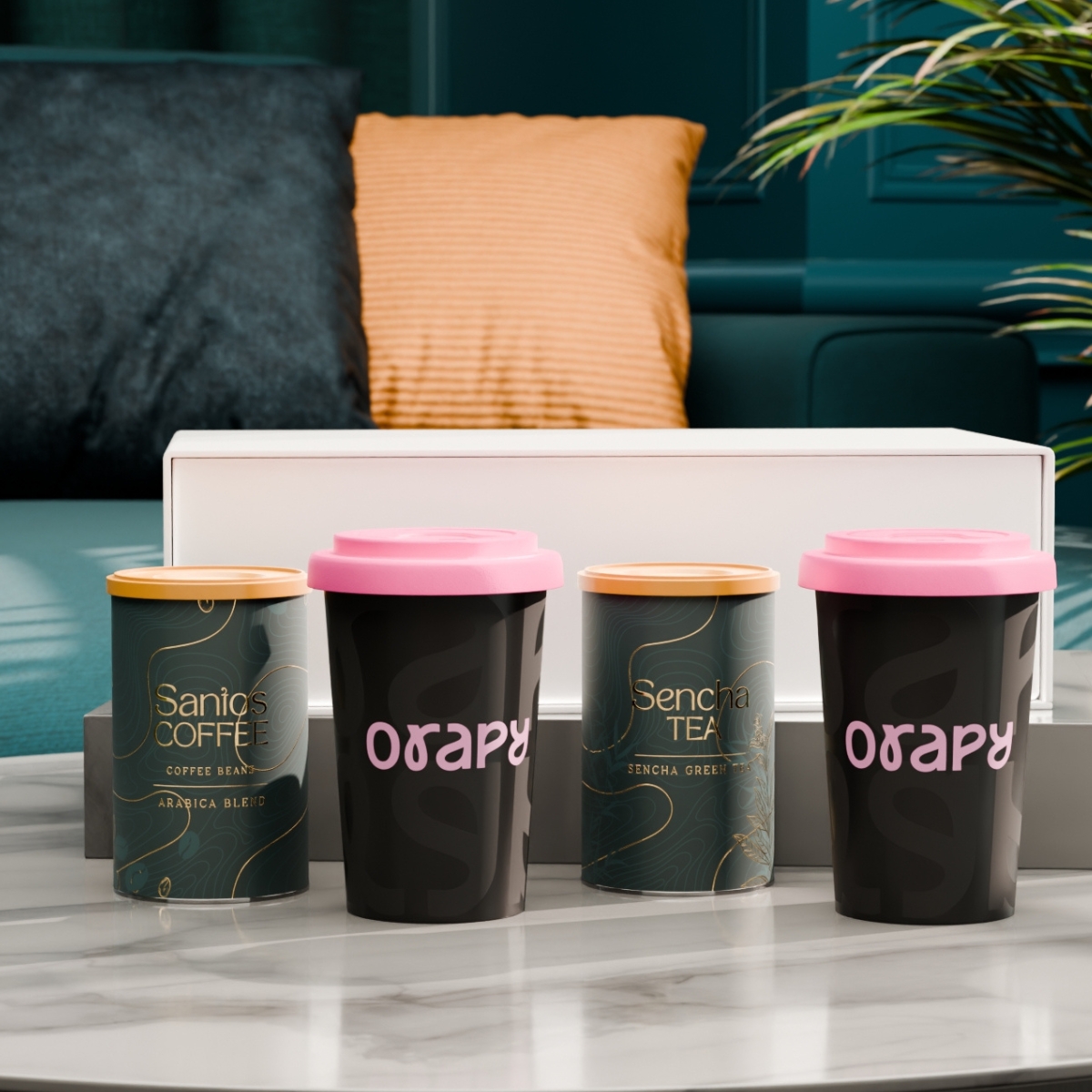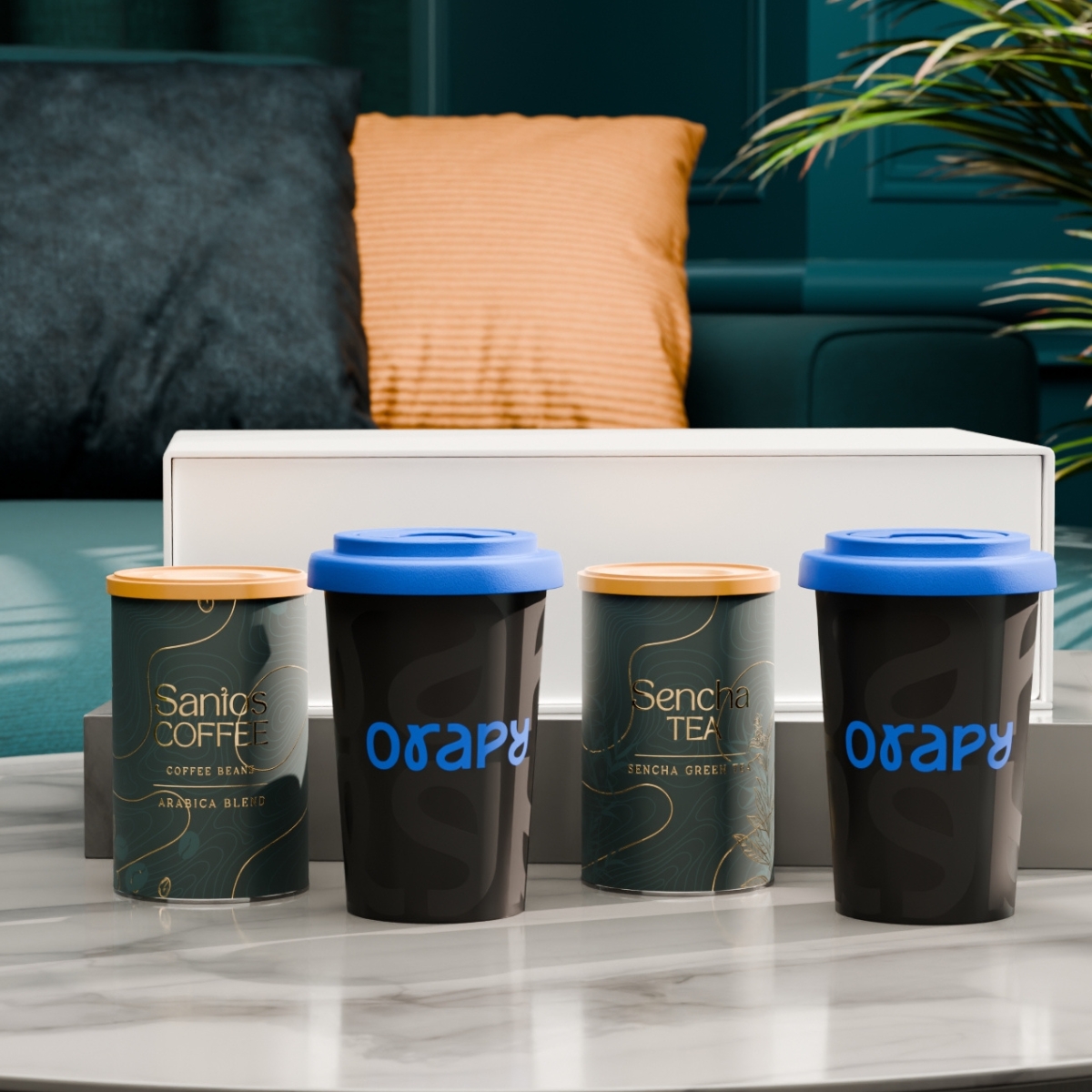Zestaw z mobilnymi kubkami Freedom to połączenie mobilności i subtelnego brandingu. W środku również wyselekcjonowana kawa "Santos Coffee" i herbata "Sencha Tea" w eleganckich puszkach. Całość pakowana w ekskluzywne, śnieżnobiałe opakowanie zamykane na magnes. Przykrywka dostępna w następujących kolorach: biały, pomarańczowy 021C, szary Cool Gray 7, czerwony 200C, granatowy 294C, brązowy 4695C, czarny, różowy 4064C, niebieski 2144C, eucalyptus 5493C, desert sand 2310C