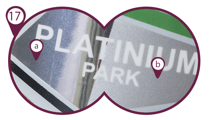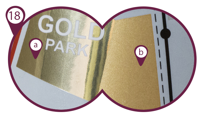 Porównanie kolorów osiągniętych metodą druku CMYK (a) oraz według Pantone (b):
