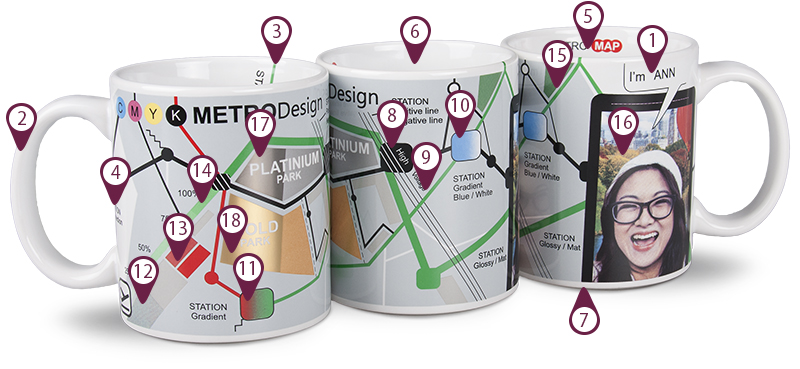 Popularna technika zdobienia kubków wykorzystująca metodę sitodruku pośredniego. Zdobienia nanoszone są na kubek przy pomocy specjalnego papieru (kalki). Niepodważalnymi zaletami tej metody jest możliwość zdobienia dużej powierzchni kubka i uzyskania efektu zdjęcia oraz rastrów.